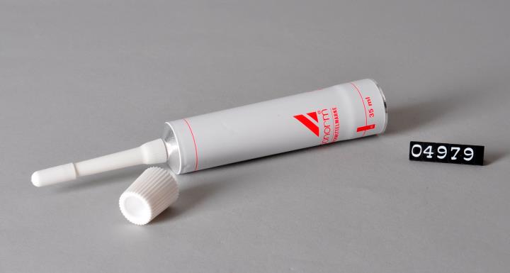 Leicht konische Tube aus Reinaluminium, Innenschutzlack und Latexgummierung am Tubenende. Gewindemündung M9. Weiße Außenlackierung mit rotem "aponorm" Signet und roter Falzmarkierung. Aufgeschraubter weißer Drehverschluß aus PE. Verschließbar mit Tubenzange. Dazu weiße Faltschachtel mit rot aufgedrucktem "aponorm" Signet. Zu 15 und 35ml. Dazu Kanüle aus PE, weiß, passend für die 35ml Tube mit M9 Tubengewinde, zur Applikation der Rektalsabe.