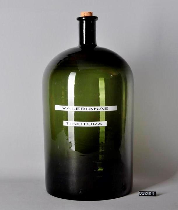 Grüner, zylindrischer Flaschenkörper mit runder Schulter, leicht gedrehter Zylinderhals mit verstärktem Mündungsrand. Hochgestochener Boden. Auf der Schulter aufgeschmolzene Glasmarke mit Volumenangabe in Liter. Durchmesser ca. 32 mm. Korkstopfen. Ohne Inhalt. An der Rückseite Angabe der Tara, mit weißer Schrift geschrieben.