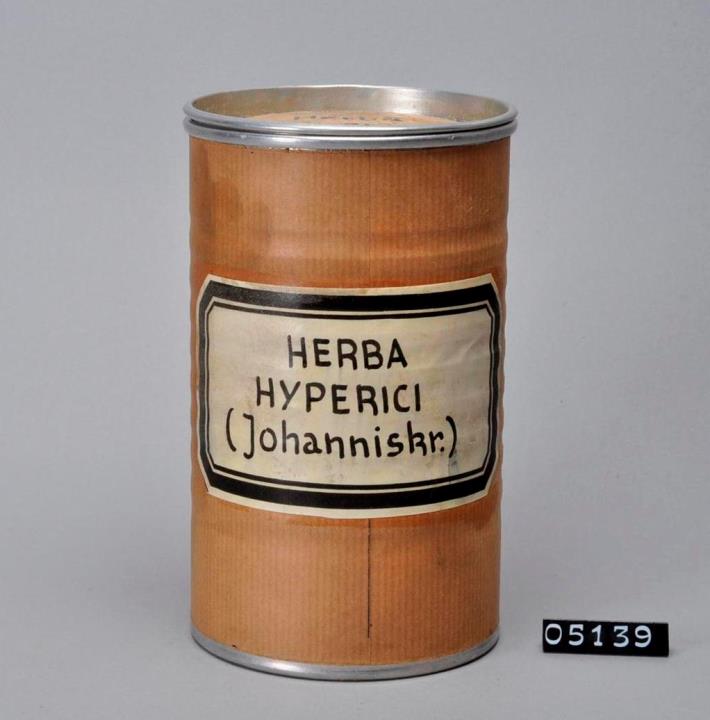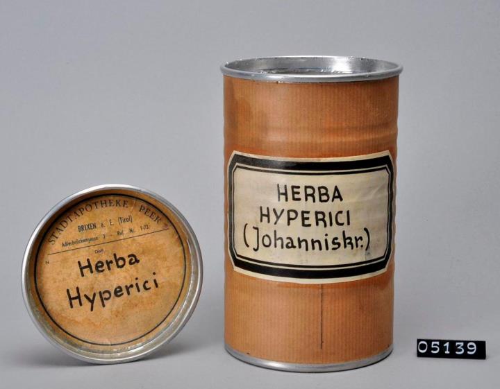 Zylindrische Dose aus Aluminiumblech mit Eindrückdeckel. Ehemals Dose für Guigoz gezuckerte Pulvermilch. Am oberern Dosenrand Manschette als Halterung des Folien-Aufreißdeckels. Innen noch Folienreste sichtbar. Wand mit neun eingedrückten rinnenförmigen Vertiefungen (Sicke). Boden gebördelt, leicht nach oben gewölbt mit Standring. Chargennummer der ursprünglichen Füllung am Boden eingeprägt. Mit braunem Packpapier überzogen und signiert. Deckel mit Etikette der Stadtapotheke Peer. Schild und Etikett mit Etikettenlack überzogen. Beschriftet von Toni Kerer.