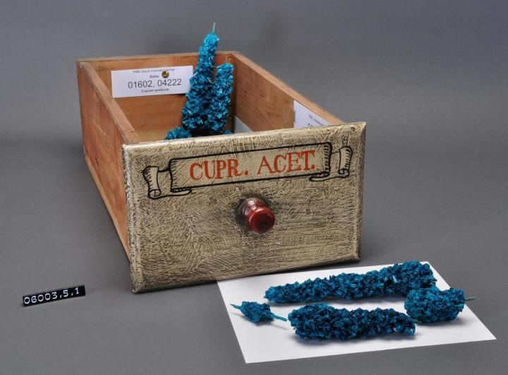Cupr(um) acet(icum - Kupfer(II)acetat), Grünspan, Aerugo, Cu(CH3COO)2