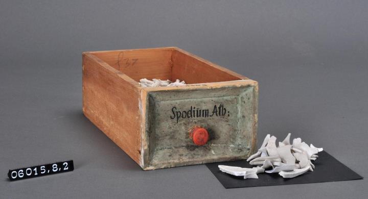 Spodium Alb(um): - Spodium de Ebore, Ebur ustum; Weiß gebranntes Elfenbein.