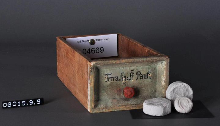 Terra Sig(illata): S(anc)t(i): Pauli - Terra sigillata alba, Terra meliteae, Terra sigillata de Maltha, Terra sigillata Militensis; Weiße Siegelerde, weiß gesiegelt Erd, Maltesische Siegelerde, Samische Erde.