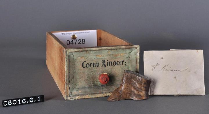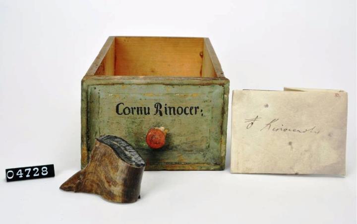 Cornu Rinocer(otis): - Cornu Rhinozerotis; Rhinozeroshorn, Nashorn.
