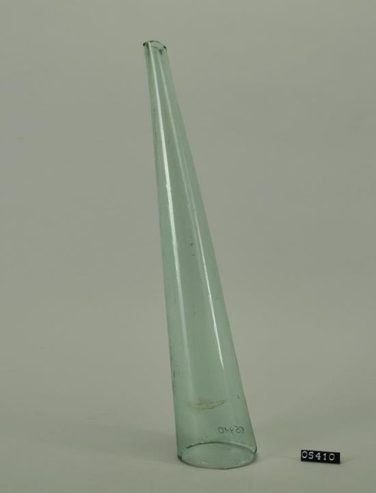 Sich nach oben hin verjüngendes Rohr aus grünlichem Glas. Am oberen und unteren Ende unregelmäßig abgeschlagen. Wurde höchstwahrscheinlich als Überleitungsrohr in der Destillation verwendet.