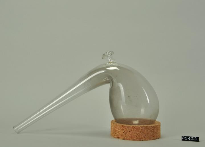 Retorte aus farblosem Glas mit Einfüllstutzen.