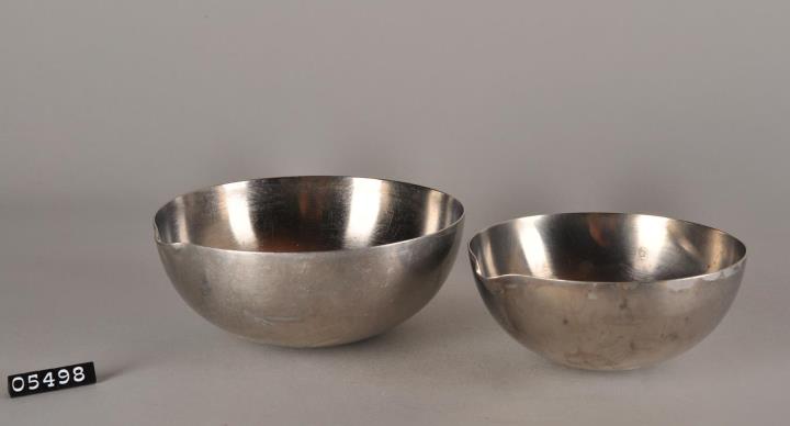 Halbkugelförmige Schale aus rostfreiem Stahl, ohne Fuß, mit Ausguss. Hergestellt von der Firma WMF aus Chromargan 18/8. Diente zur vereinfachten Herstellung von Salben und Cremes. Der Name Patene wurde in Österreich verwendet.