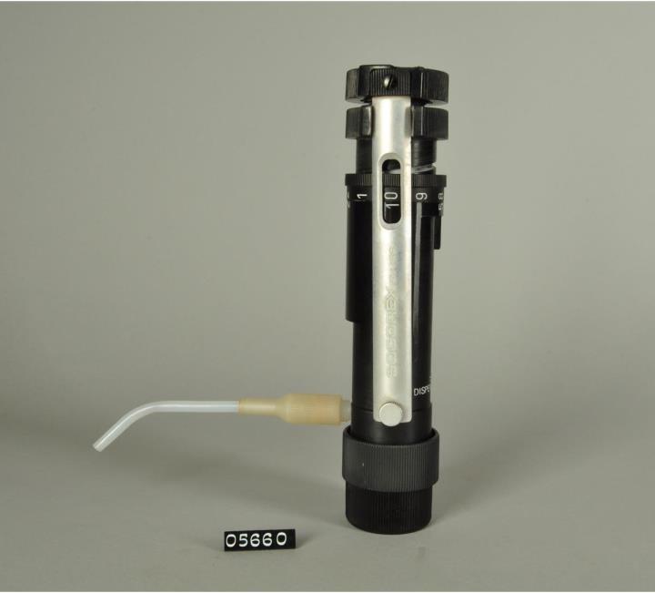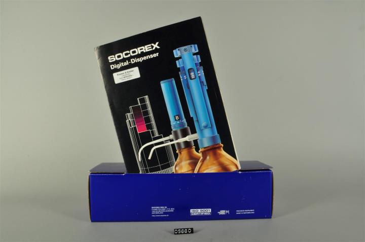 Flaschen-Dispensierer wird zum Um- oder Abfüllen direkt auf die Oroginalflasche aufgesetzt. Fehlerfreie, genaue Volumeneinstellung direkt am Dispensierer. Mit verschiedenen Adaptern für alle gängigen Flaschen im Labor. Für Füllmengen von 10 - 50 ml. In originaler Verpackung mit verschiedenem Zubehör. Sowie zweite Dispensierpipette von 0,5 - 5 ml mit 29 Makrospitzen.