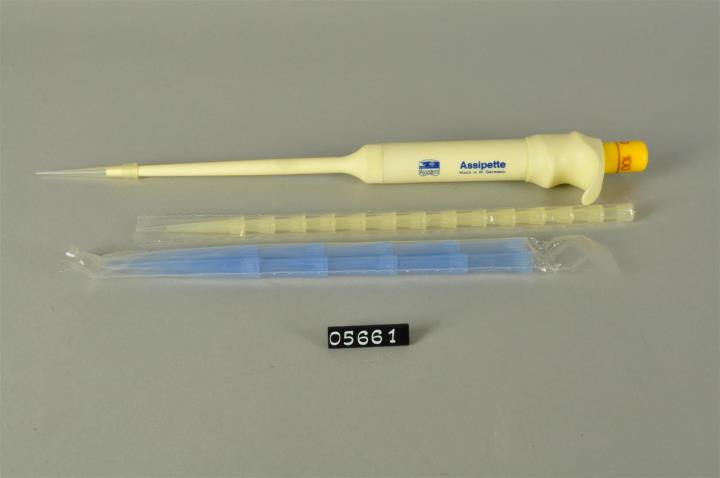 „Assistent“-ASSIPETTE (Kolbenhubpipetten) zu 100 µl – Zum präzise Messen von kleinen Volumina, sind wartungsfrei – Flüssigkeiten gelangen nicht ins Inneredes Gerätes… haben die handliche Fingerlasche… gewährleisten durch ein zweifaches Federsystem ein präzises Aufziehen und Ausstoßen der Probe… sind verwendbar für Pipettierungen in kleinen und größerenGefäßen, z. B. auch in Reagenzgläsern bis zu einer Glas-höhe von 160 mm… saugen im unteren Schaftteil das Volumen an. Dadurchwird der Einfluß der Handwärme auf das Meßteil weitgehend ausgeschaltet. Die Kunststoffteile sind aus Polypropylen. Mit „Assistent“-Einmal-Pipettenspitzen aus benetzungsfreiemKunststoff – passend für ASSIPETTEn und sonstige Kolbenhubpipetten (Brand, Eppendorf, La Fontaine, Gilson, LabSystems). Gelbe Einwegspitzen, für Volumina bis 100 µl,autoklavierbar und blaue Einwegspitzen, für Volumina 101–1000 µl,autoklavierbar.