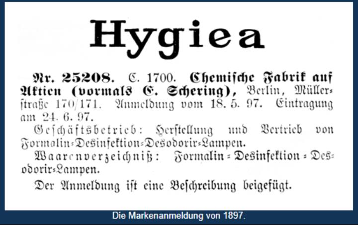 Kleine Spirituslampe mit Einsatz zum Vergasen von Formalinpastillen. Aufwändig gestalteter Verpackungskarton mit aufgedruckter Gebrauchsanleitung. Am Dochtrohr ist eine Kette mit Kappe angelötet, welche bei Nichtgebrauch auf das Dochtrohr gesteckt wurde, um ein rasches Verdunsten des Spiritus zu vermeiden.