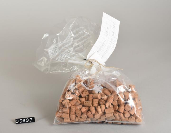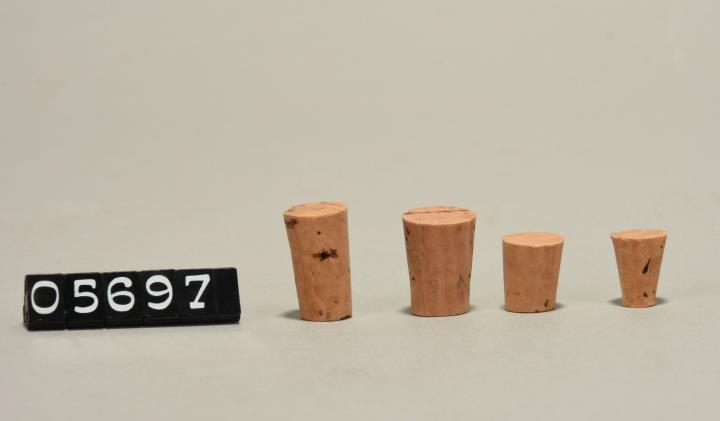 Verschiedene kleine Naturkorken für Enghalsgefäße, aus natürlicher Korkrinde gewonnen. Verschiedene Größen, rund, konisch verjüngend zusammenlaufend, d.h. der obere Durchmeser ist größer als der untere Durchmesser des Korkens. Dadurch benötigt man kein Werkzeug zum Aufstecken. Unterschiedliche Qualitäten.