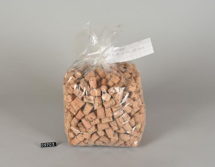 Verschiedene kleine Naturkorken für Enghalsgefäße, aus natürlicher Korkrinde gewonnen. Verschiedene Größen, rund, konisch verjüngend zusammenlaufend, d.h. der obere Durchmeser ist größer als der untere Durchmesser des Korkens. Für diese konischen Korken, Spitzkorken genannt, benötigt man kein Werkzeug zum Aufstecken. Schlechte Qualität!