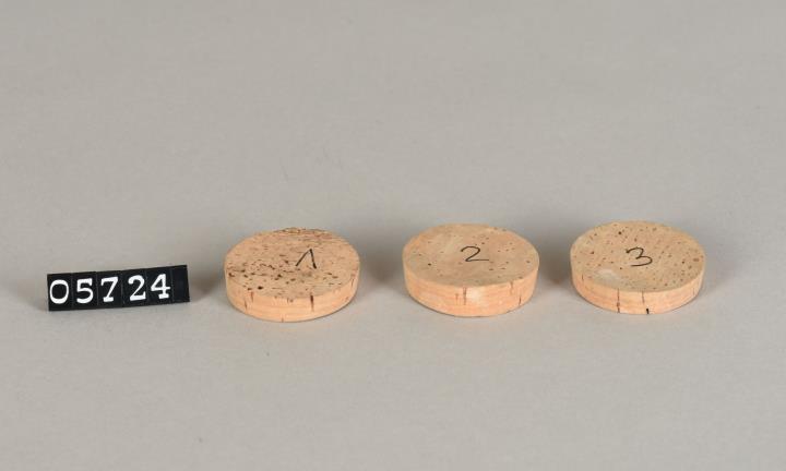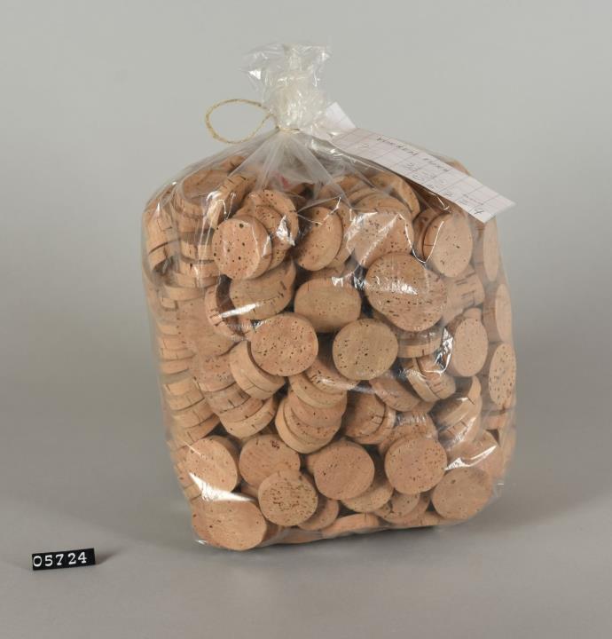 Weithalskorken, aus natürlicher Korkrinde gewonnen. Verschiedene Größen, rund, konisch verjüngend zusammenlaufend, d.h. der obere Durchmeser ist größer als der untere Durchmesser des Korkens. Durch diese konische Form wird das Aufstecken erleichtert. Sehr unterschiedliche Qualitäten.