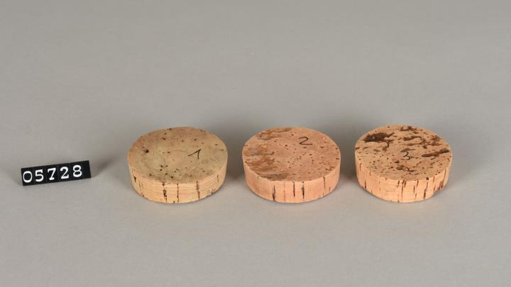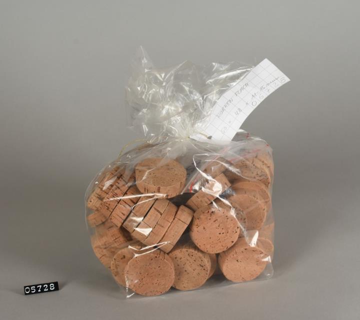 Weithalskorken, aus natürlicher Korkrinde gewonnen. Verschiedene Größen, rund, konisch verjüngend zusammenlaufend, d.h. der obere Durchmeser ist größer als der untere Durchmesser des Korkens. Durch diese konische Form wird das Aufstecken erleichtert. Unterschiedliche Qualitäten.