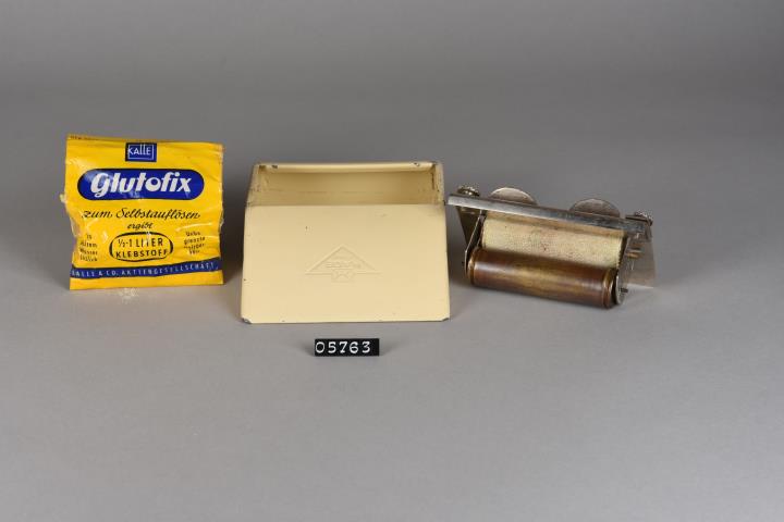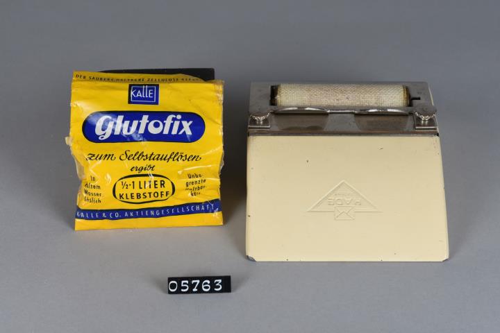 Hade Etikettierer, dient zum Beleimen oder Anfeuchten von allen gängigen Papiersorten. Der Hade-Etikettierer kann mit einer Hand bedient werden, einfach das Papier einführen und durchziehen. Die untere Walze überträgt den Leim auf die obere Walze und dosiert somit den Leim der durch das Durchziehen auf das Etikett aufgetragen wird. Mit Etikettenleim der Firma Glutofix.
